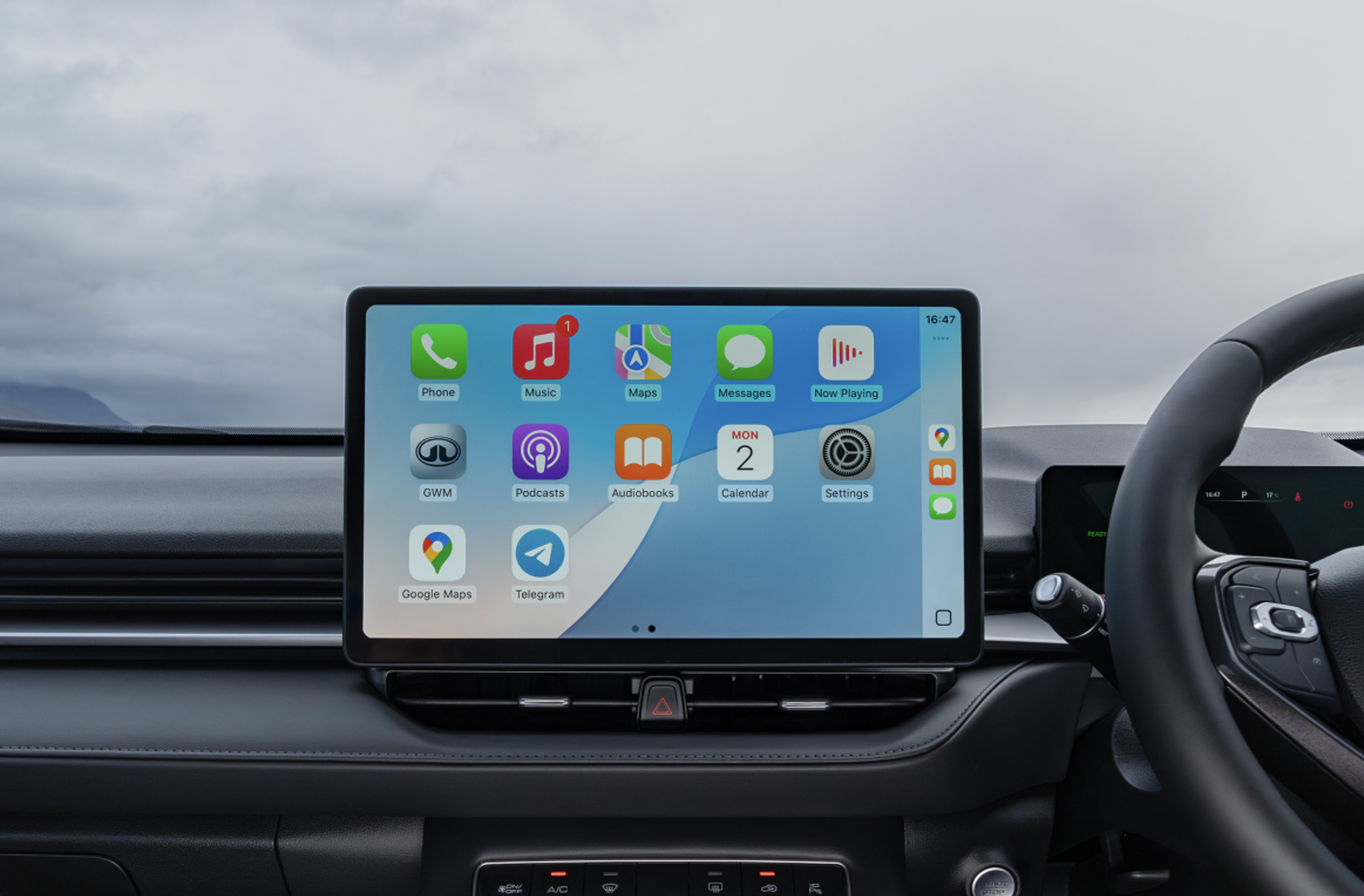 The new HAVAL H6 puts intelligence at your fingertips, now enhanced with voice command capabilities for effortless control. Its sleeker 14.6-inch touchscreen and smarter connectivity offer a seamless experience, while a thicker steering wheel improves grip for confident handling. With wireless charging and full integration with your phone, you stay connected, powered up, and in command, all with just your voice